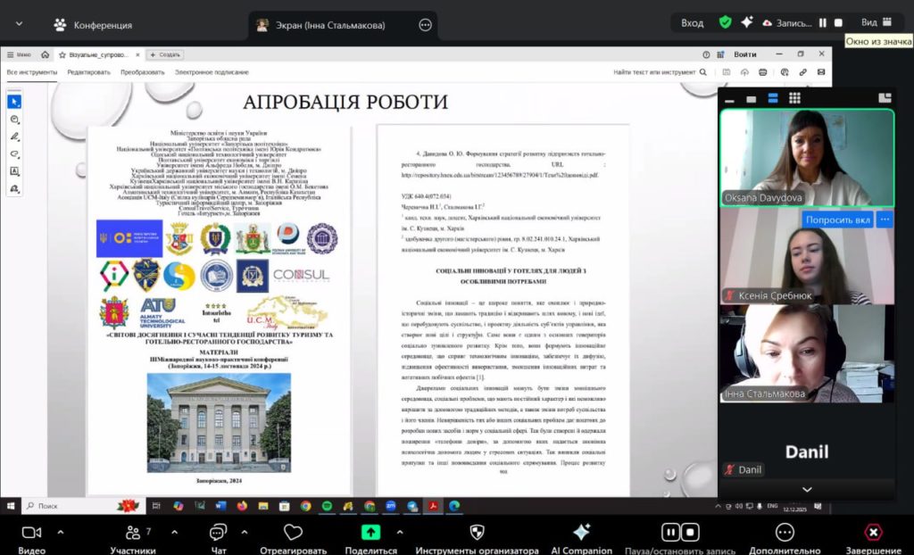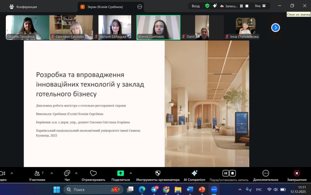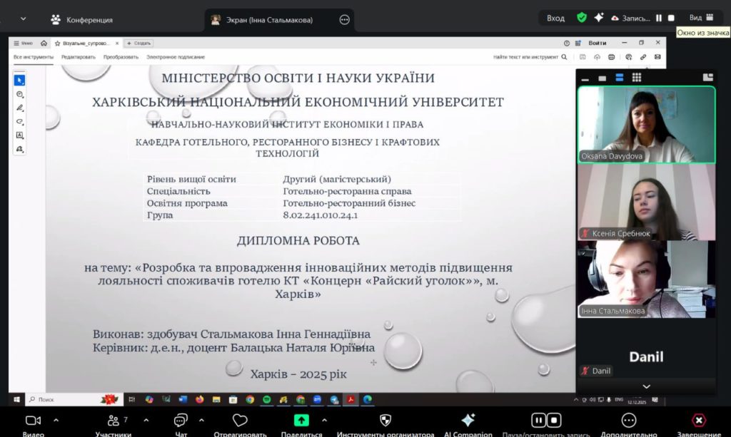 Захист дипломних робіт здобувачів другого (магістерського) рівня вищої освіти ОП «Готельно-ресторанний бізнес» 12.12.2025.