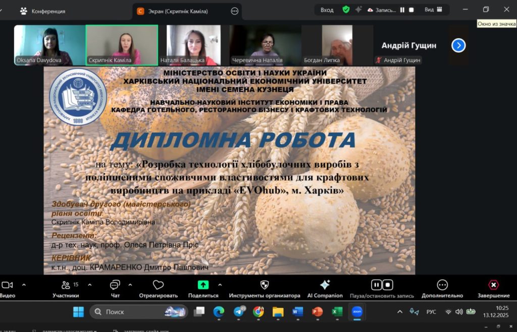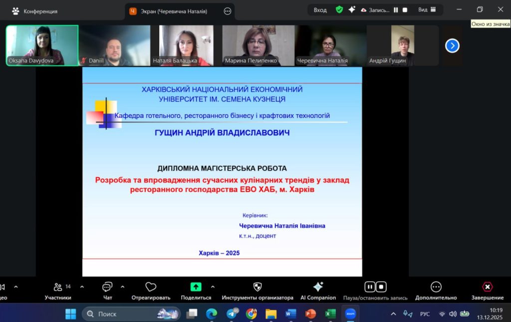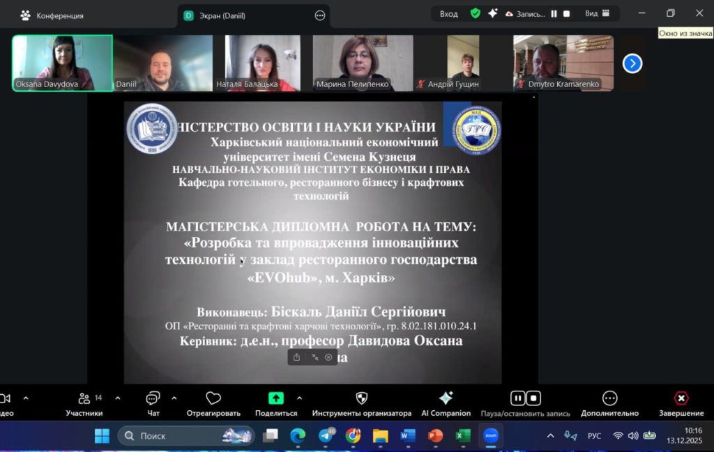 👩🎓 13 грудня 2025 року на кафедрі готельного, ресторанного бізнесу і крафтових технологій, ХНЕУ ім.С.Кузнеця відбувся захист дипломних робіт здобувачів другого (магістерського) рівня вищої освіти ОП «Ресторанні та крафтові харчові технології».