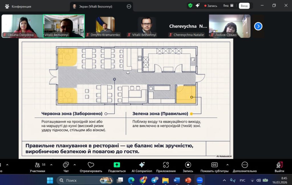 Лектор-модератор проведеного заходу: к.т.н., доцент кафедри готельного і ресторанного бізнесу Тетяна Хаустова. Гостьову лекцію проведено з використанням платформи Zoom. Питання вебінару викликали жваву дискусію здобувачів вищої освіти. По закінченню лекції, учасники одноголосно відзначили прогресивний, інноваційний формат проведення гостьової лекції, її високий теоретико-практичний, методичний рівень, який відповідає сучасним вимогам вищої школи!