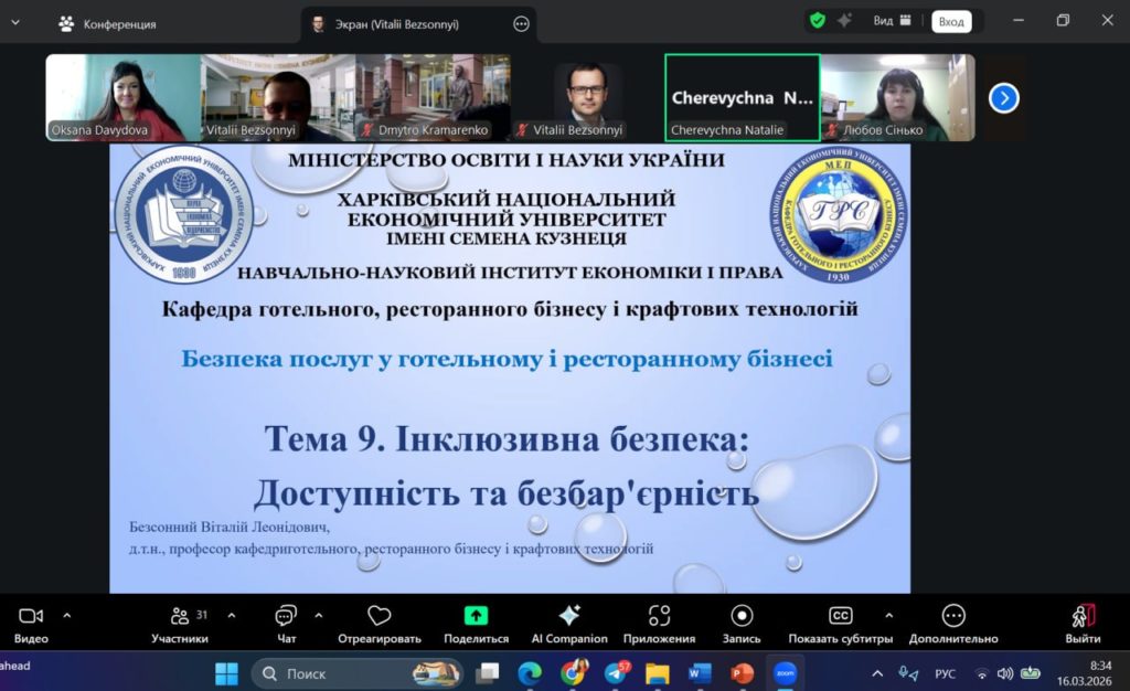 1️⃣6️⃣березня 2026 року 🌏На кафедрі готельного, ресторанного бізнесу і крафтових технологій Харківського національного економічного університету імені Семене Кузнеця відбулась ВІДКРИТА лекція з навчальної дисципліни «Безпека послуг у готельному і ресторанному бізнесі» 📚 Тема лекції: «Інклюзивна безпека готельного і ресторанного бізнесу: доступність та безбар’єрність»