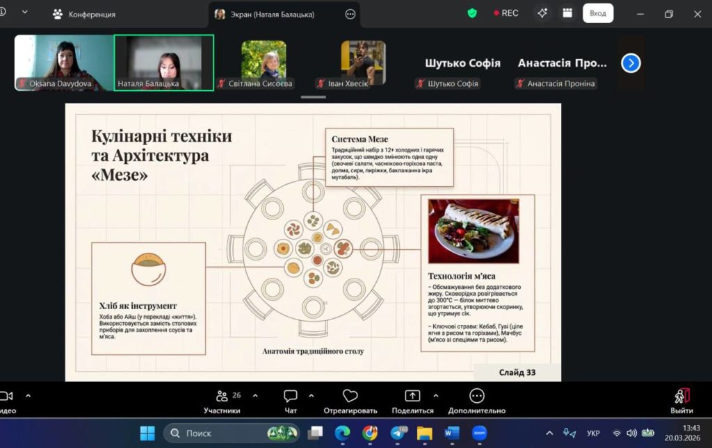 2️⃣0️⃣березня 2026 року 🌏На кафедрі готельного, ресторанного бізнесу і крафтових технологій Харківського національного економічного університету імені Семене Кузнеця відбулась ВІДКРИТА лекція з навчальної дисципліни «Традиції та культура харчування народів світу» на тему:
