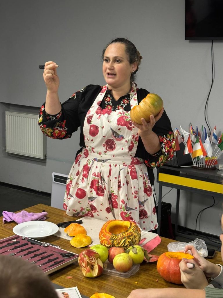 Кожний школяр під чуйним керівництвом спікера, зробив власний витвір мистецтва з гарбуза🎃 та отримав масу позитивних емоцій!