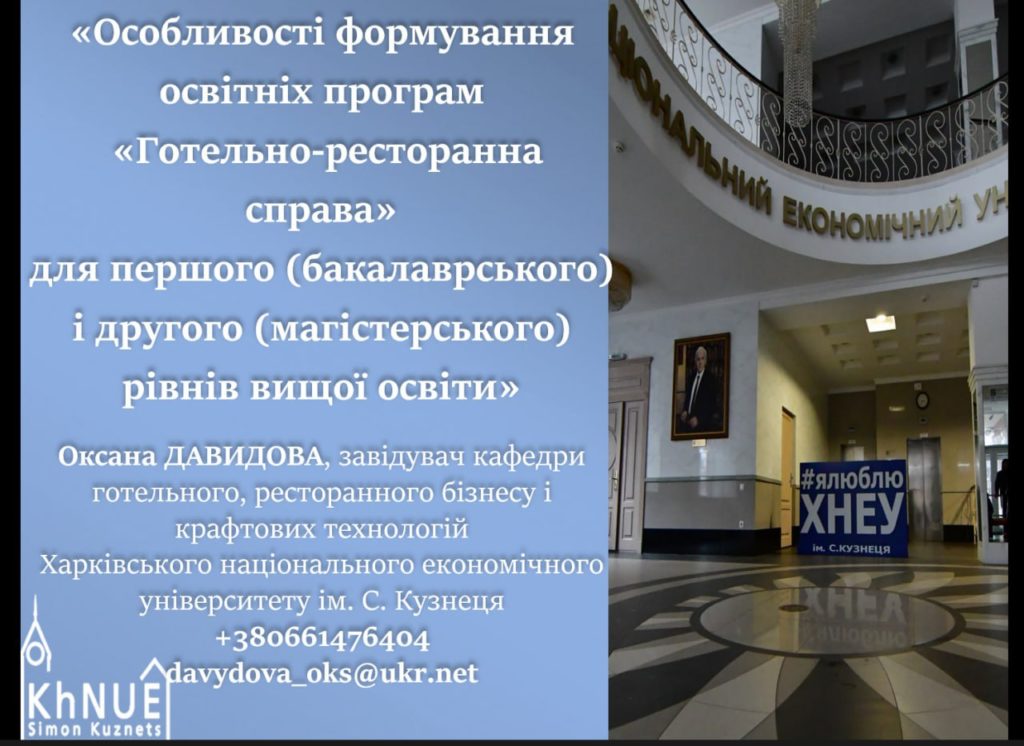 🔹 Гарант ОП Готельно-ресторанна справа – завідувач кафедри готельного , ресторанного бізнесу і крафтових технологій Харківського національного економічного університету імені Семена Кузнеця,