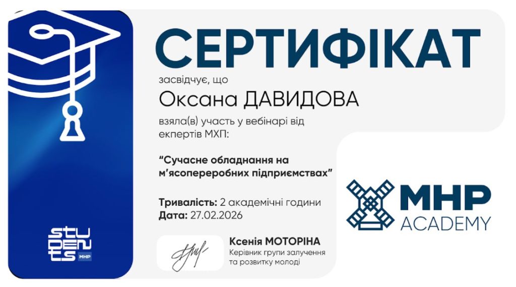 16 лютого 2023 року підвищення кваліфікації у PROFI CLUB пройшли завідувач кафедри готельного і ресторанного бізнесу, професор Давидова Оксана та доцент кафедри готельного і ресторанного бізнесу Хаустова Тетяна шляхом онлайн зустріч на тему “МАРКУВАННЯ ХАРЧОВИХ ПРОДУКТІВ: інформованість споживачів та відповідальність виробника». Основні питання, що розглядались: